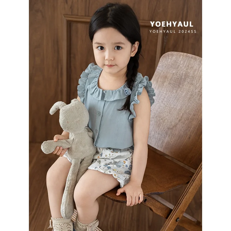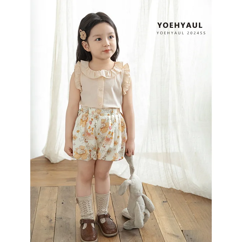 LX0170 YOEHYAUL Cotton Pleated Elegant Girl Children's Blouse for Kids Vintage Digital Printed Floral Kids Blouse T Shirt Girl